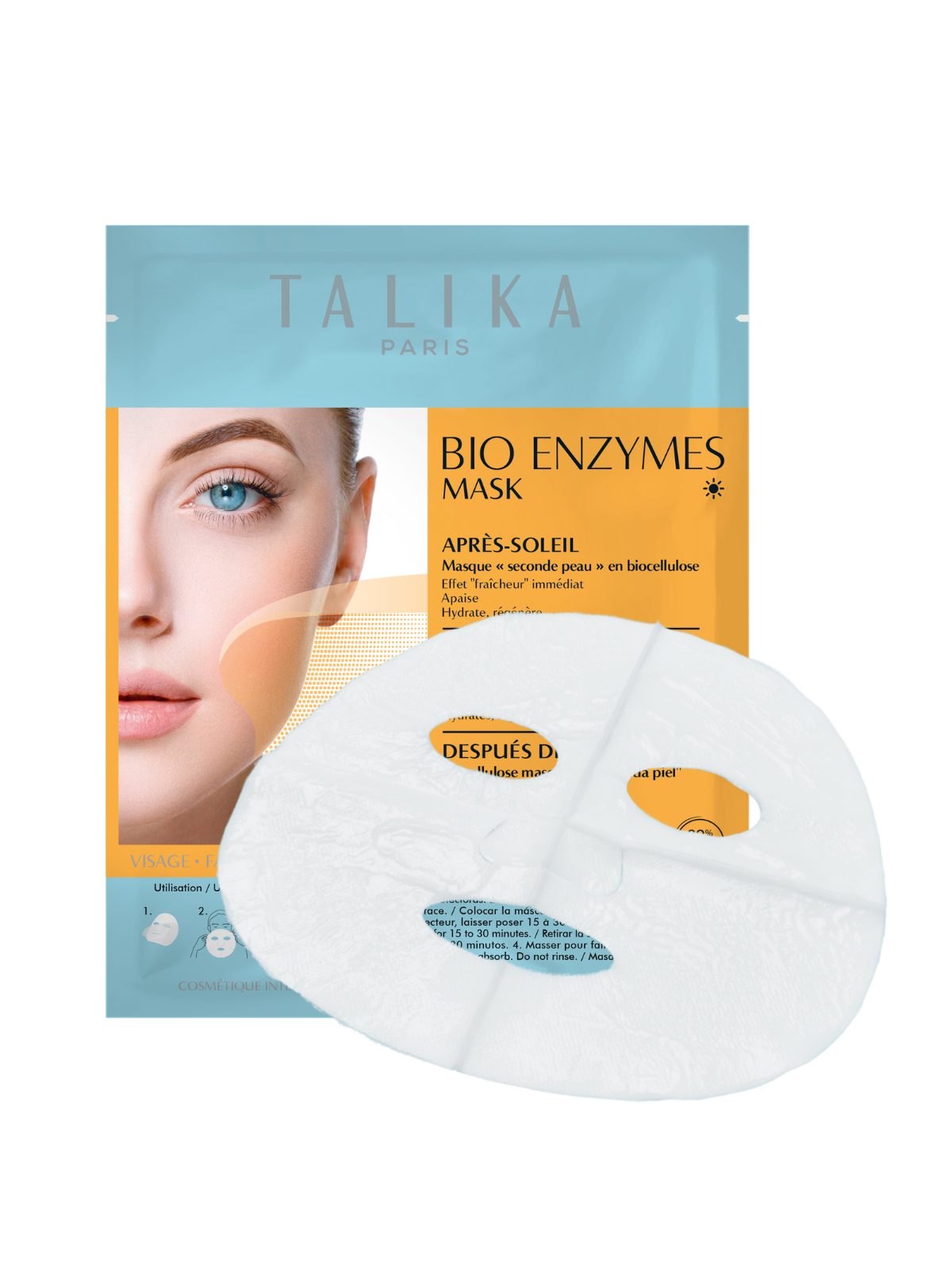 日焼けや雪焼けによる乾燥や炎症などの肌ダメージは、しわやシミ、肌荒れにつながることもあるためケアが欠かせません。TALIKA Parisのフェイスパックは顔の凹凸に密着するバイオセルロースシートを使用しています。ココナッツウォーターと発酵技術が融合された植物由来の素材であり、肉厚でぷるんとしたマスクが日焼け後の敏感な肌にぴったりと密着して顔全体をしっかり包み込みながらうるおいを与えるとともに、心地よいリフレッシュ感をもたらします。